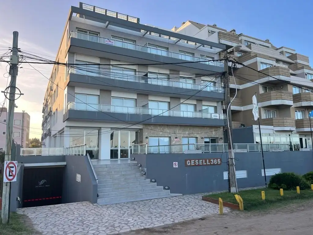 Ubicado sobre Costanera entre Paseo 107 y 108, zona centro de Villa Gesell. El departamento emplazado en un tercer piso accesible por ascensor cuenta con un ambiente amplio y muy luminoso con ventanal corredizo y vista panorámica al mar con salida al balcón, carpintería de aluminio Aluar línea Moderna. Cocina incorporada con barra divisoria y mesada de granito, muebles bajo mesada y alacena de melamina. Baño completo y ante baño con bañera y revestimiento de porcelanato. Calefacción por Losa radiante, cielorraso de yeso, pisos revestidos en porcelanato. Todos sus artefactos eléctricos.