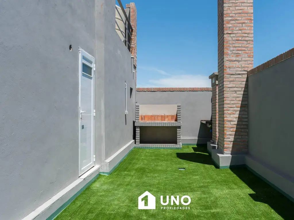 Departamento con terraza exclusiva de 35 m2, parrillero, bacha. Ambiente único dividido, similar a un funcional departamento de un dormitorio. Cocina separada con barra desayunador, mesada en "U" y conexión para lavarropa, espacio de descanso, balcón interno y baño. La terraza esta incluída en el valor. Hay cocheras disponibles.