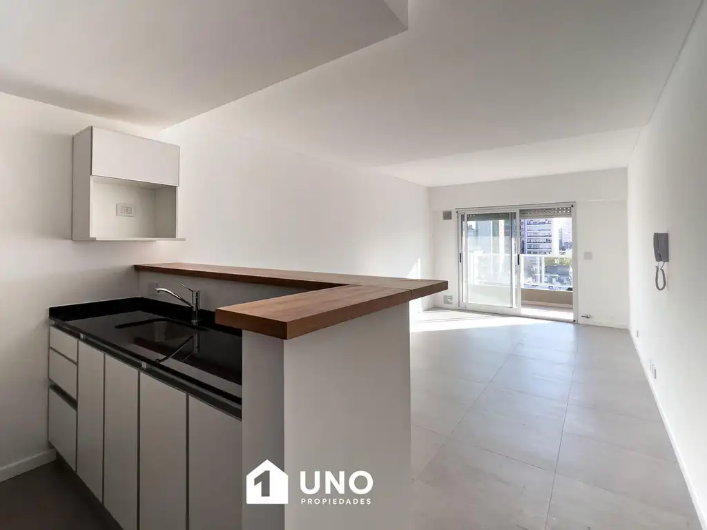 Ingreso a un amplio estar/comedor con ventanal y pequeño balcón al frente. Cocina semiseparada con barra desayunadora y ventilación natural. Dormitorio con placard y baño completo con ventilación propia.