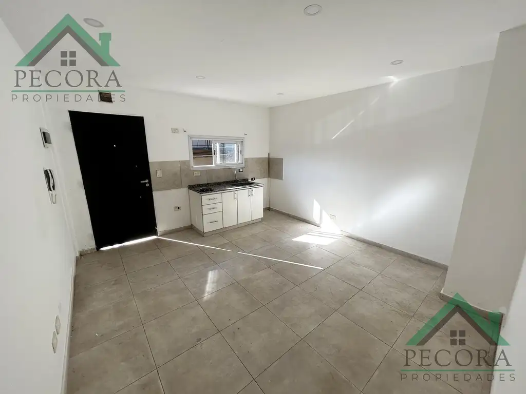 -DEPTO : Al ingresar tenemos una cocina comedor integrada con mesada, bajo mesada, sector para lavarropas, baño completo con bañera y un dormitorio con placard.