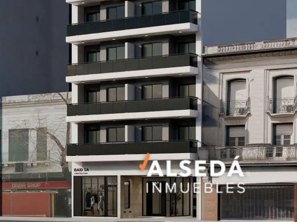 Departamentos de 1 dormitorio, frente, internos y contrafrente, todos con balcón.