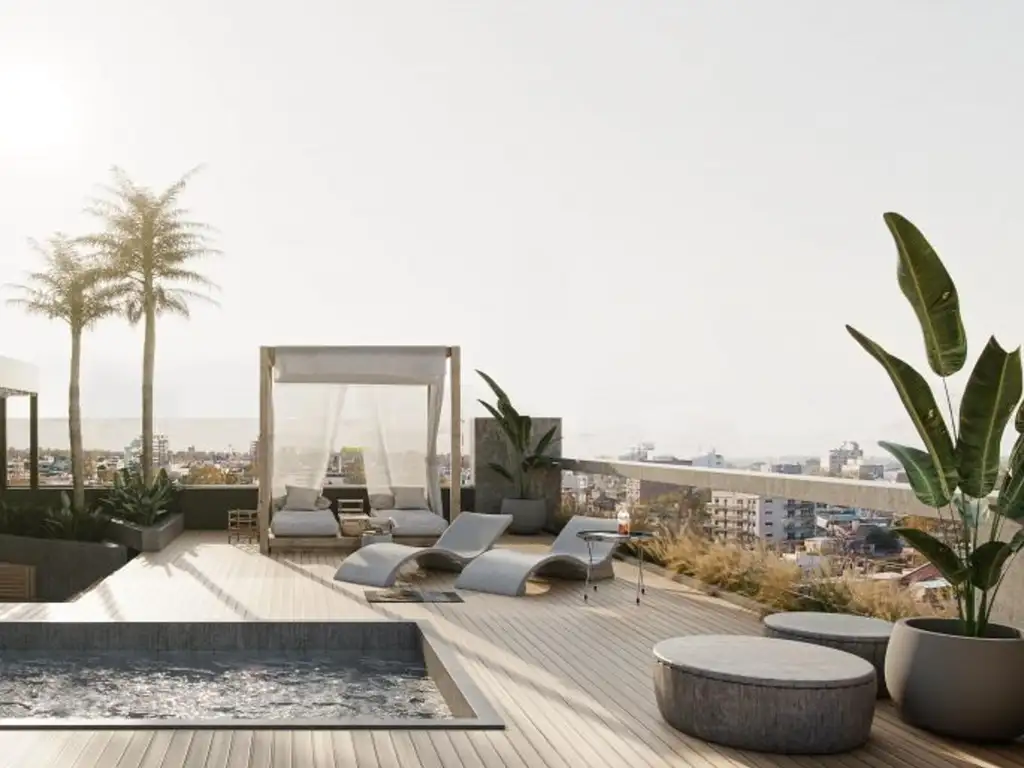 En el piso 14, un rooftop con vista panorámica de la ciudad se convierte en un mirador exclusivo, ideal para relajarte o compartir.