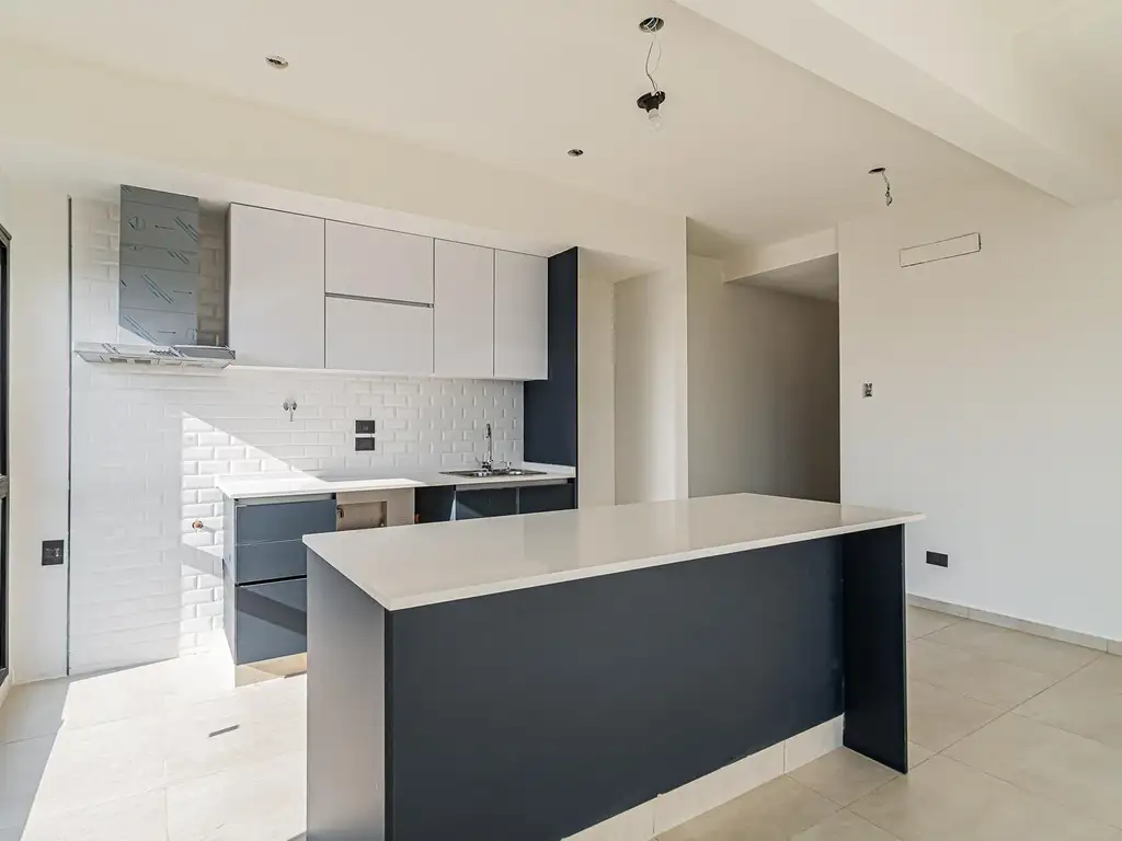 - Cocina integrada con mesada de cuarzo y bacha Johnson