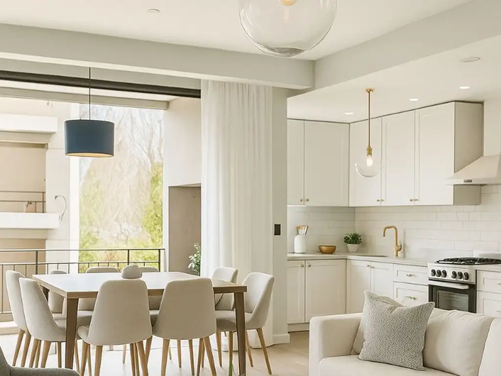 Cuenta con un amplio living-comedor con pisos de porcelanato, una cocina equipada con muebles completos, mesada de granito y grifería monocomando, y un baño completo amplio con mampara de vidrio, vanitorios y griferías de primeras marcas. Además, dispone de un balcón con parrilla propia, un valioso diferencial en el mercado actual.