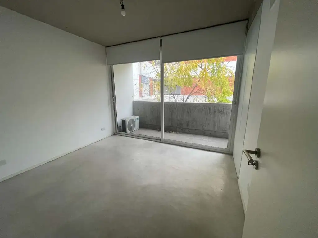 Cuenta con cocina integrada, 2 hornallas, mesada de granito. Techos hormigón visto, Habitación con placard aire acondicionado, Balcón corrido al contrafrente.