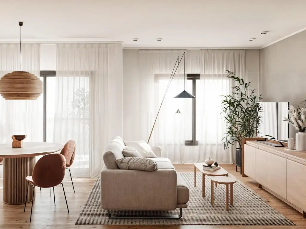 Estar-comedor: Con cocina semi-integrada que optimiza el espacio.