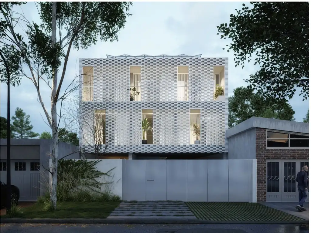 CARACTERISTICAS CONSTRUCTIVAS: Estructura de hormigón armado.Muro doble perimetral: ladrillo hueco interior + ladrillo visto exterior.Aberturas de PVC con DVH (doble vidriado hermético).Pisos de porcelanato gris de primera calidad ? Cielorrasos de losa vista con encofrado de tablas.Muebles de cocina: interiores en melamina blanca, frentes en MDF laqueado blanco y enchapado de madera.Anafe, horno y campana de primera marca.Sanitarios línea Roca Dama Senso o similar. Griferías marca FV Epuyén o similar.Preinstalación de cañerías para aire acondicionado.Calefacción por losa radiante eléctrica.Termotanque central para provisión de agua caliente