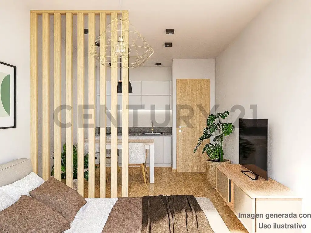 • Dormitorio con placard, baño completo, cocina integrada