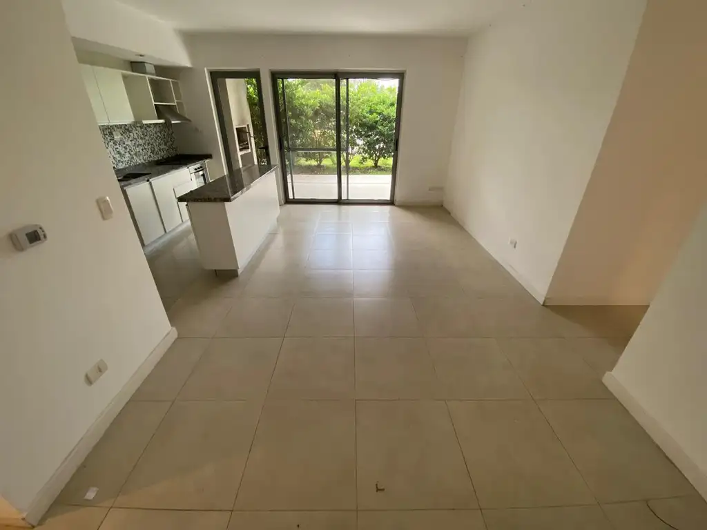 Living - comedor, con cocina integrada y salida al jardin.