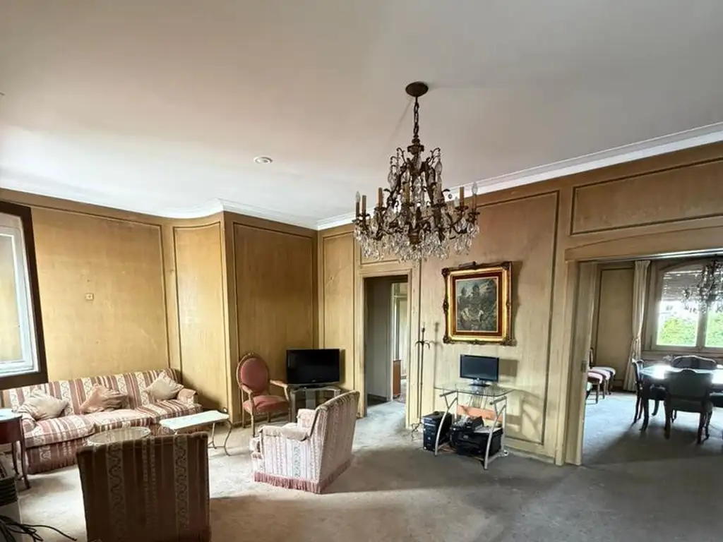 El departamento tiene baño completo, toilette y baño completo de servicio; se encuentra a refaccionar, con pisos de parquet debajo de la alfombra con calefacción y agua central, los ambientes son amplios, ventilados y luminosos