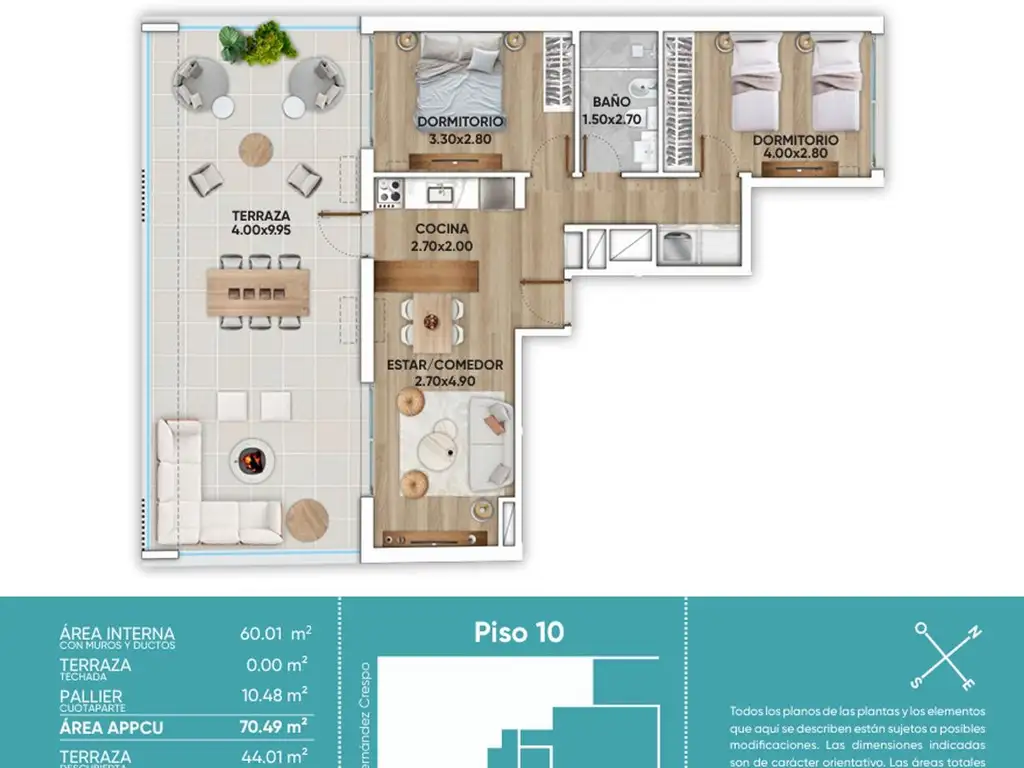 Precio correspondiente a la unidad Penthouse en piso 10 con una terraza espectacular de 40m2 orientada al Norte U$S 201.000