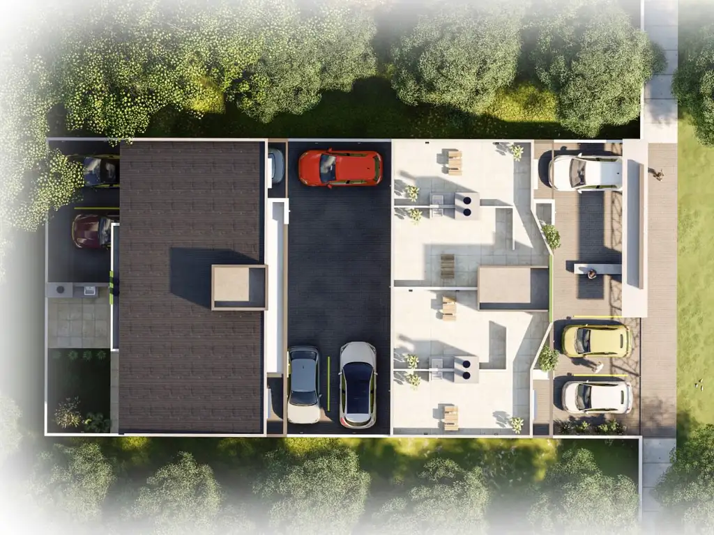 PB IZQ= 51 m2, Departamento a la calle. Consta de cocina-comedor, Living, 2 dormitorios y un baño, patio con parrilla y lavadero de 5 m2. Cochera cubierta o espacio vehicular opcional.
