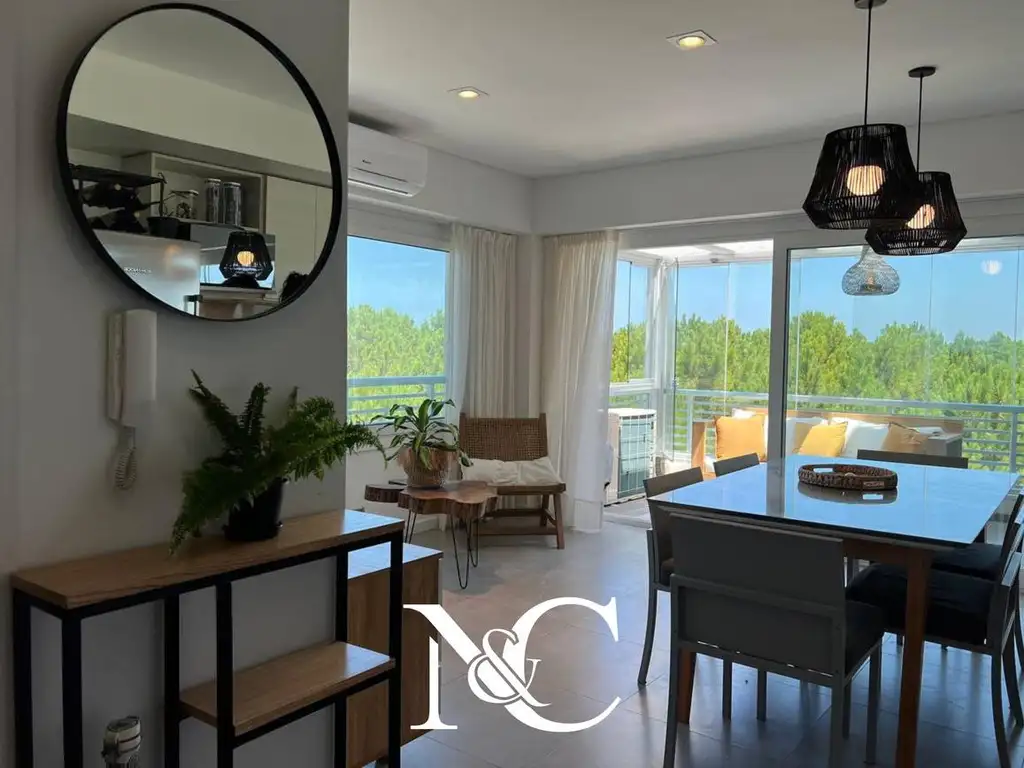 Está distribuido en una planta, se accede por el living comedor con cocina integrada, donde hay una hermosa vista a los pinos y un toilette.