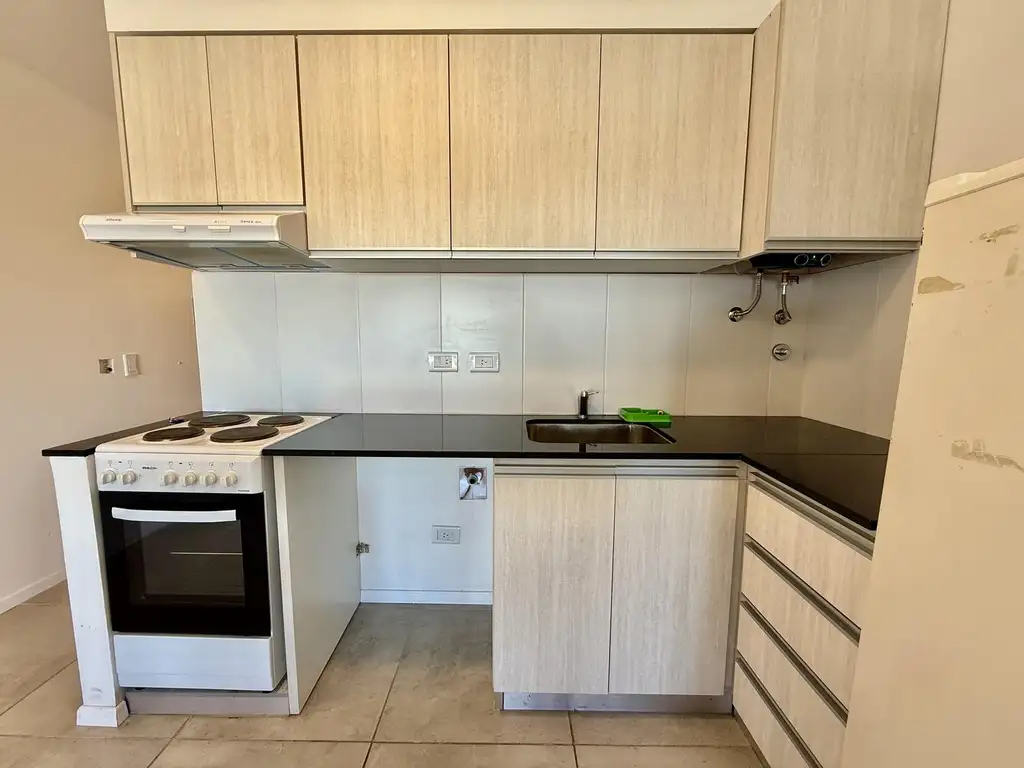 La unidad cuenta con un ambiente único con cocina integrada, equipada con electrodomésticos, mesadas de granito negro y muebles bajo y sobre mesada. Dispone de baño completo, griferías instaladas y conexion para lavarropas.