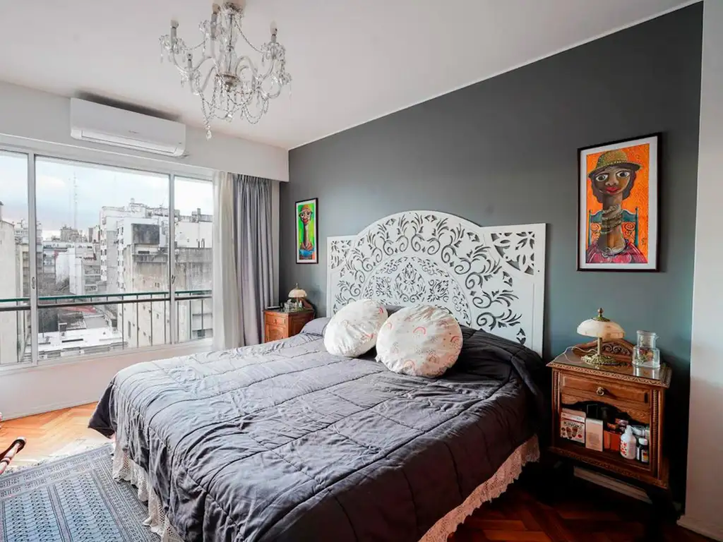 Tres dormitorios, uno con gran ventanal hacia la avenida, con placares y buena ventilación.