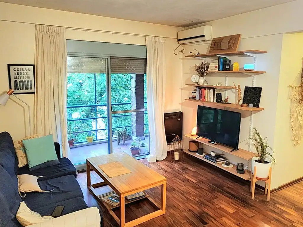 Ambiente de generosas dimensiones, muy luminoso, con salida directa al balcón al frente a través de una con doble puerta-ventana, con vista verde y protección. Sus dimensiones permiten recibir visitas, y su orientación disfrutar del sol de la tarde, que garantiza calidez y luz natural. Cuenta con aire acondicionado Split y estufa tiro balanceado.