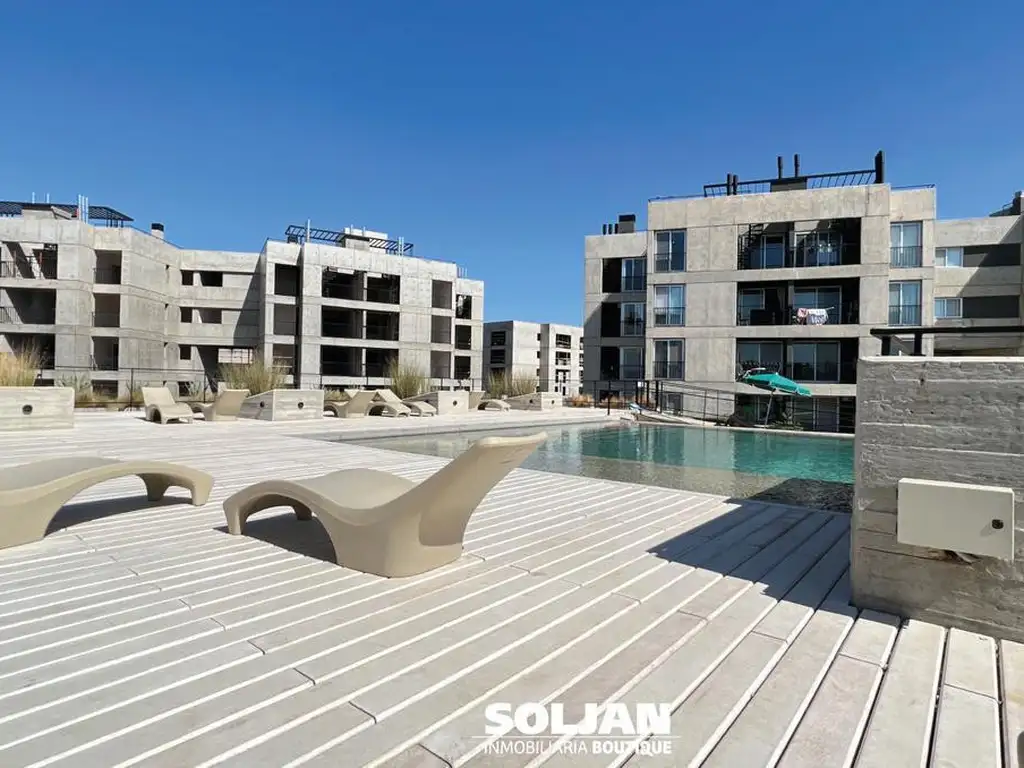 Piscina exterior con solarium, piscina indoor, vestuarios, SUM, gimnasio y juegos infantiles. Parrillas individuales en los balcones