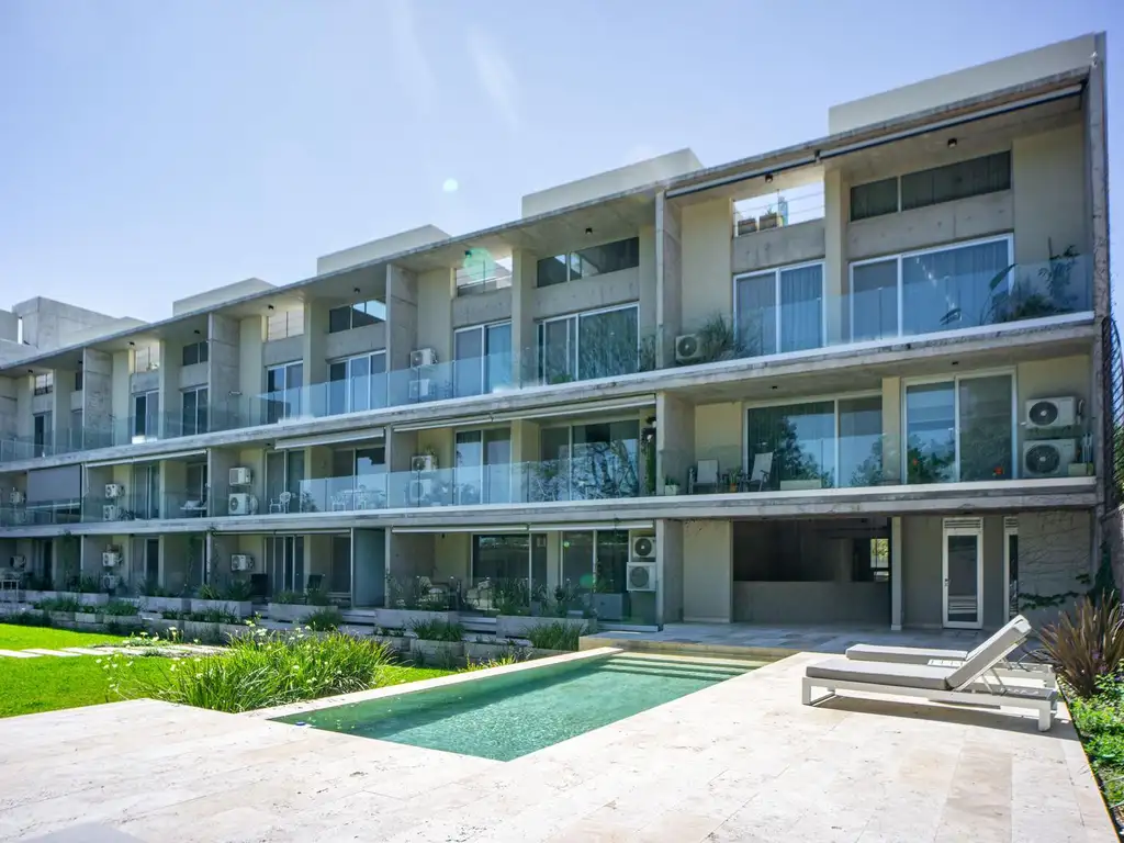La unidad que ofrecemos se trata de un Departamento de 1 dormitorio con un diseño moderno tipo loft, techos de hormigón visto, pisos de porcelanato, ubicado al frente, con vista a Ruta 9 y orientación Norte. Cocina integrada al living comedor con mesada de granito gris, bacha de acero inoxidable, grifería monocomando de diseño, muebles de alacenas y bajo mesada, caldera, horno y anafe empotrados. En este nivel la unidad cuenta con un toilette y mediante una cómoda escalera se accede al nivel del dormitorio de gran amplitud, con vestidor y baño completo en suite con ante baño.
