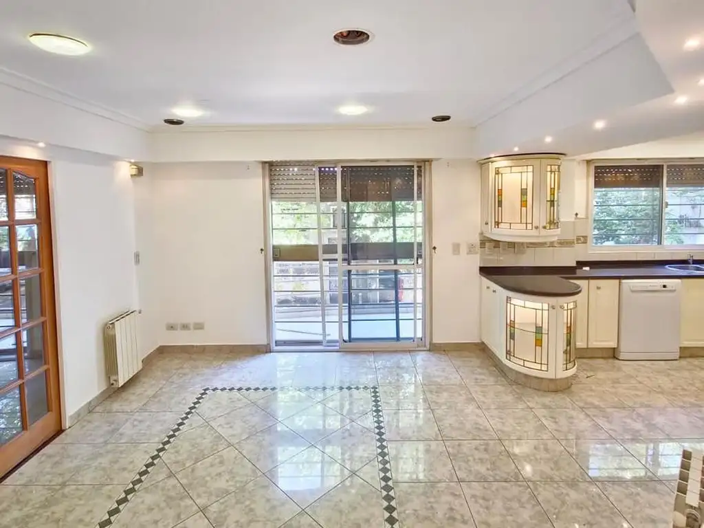 DOBLE ACCESO, DE UN LATERAL CUENTA CON COCINA COMEDOR de 30 mts CON BALCON, Y 3 DORMITORIOS, UNO EN SUITE CON HIDROMASAJE, VESTIDOR Y BALCON, ADEMAS CUENTA CON UN BAñO PRINCIPAL COMPLETO. POR EL OTRO LATERAL CUENTA CON UN AMBIENTE FUNCIONAL A LAVADERO, TOILETTE Y UN DORMITORIO CON PLACARD, EL CUAL PUEDE FUNCIONAR COMO OFICINA, CUENTA CON ESCRITORIO. TAMBIEN DISPONE DE UN AMPLIO LIVING CON BALCON, Y SALIDA A UN PATIO PROPIO CON TECHO REBATIBLE, TIENE MESADA CON BACHA, Y BAJO MESADA, Y UN HORNO.