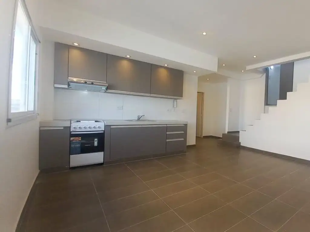 AMBIENTE AMPLIO, LUMINOSO Y VENTILADO CON ABERTURAS DE ALUMINIO CON VIDRIO DVH, SECTOR DE PLACARD, PISOS REVESTIDOS CON PORCELANATO, ESCALERA DE MATERIAL REVESTIDA CON PORCELANATO Y SECTOR DE TERRAZA EXCLUSIVA DE LA UNIDAD CON PISO REVESTIDO CON CERÁMICOS, MESADA CON PILETA Y PARRILLA REVESTIDA CON LADRILLOS REFRACTARIOS Y HERRAJES DE PARRILLA INSTALADOS.