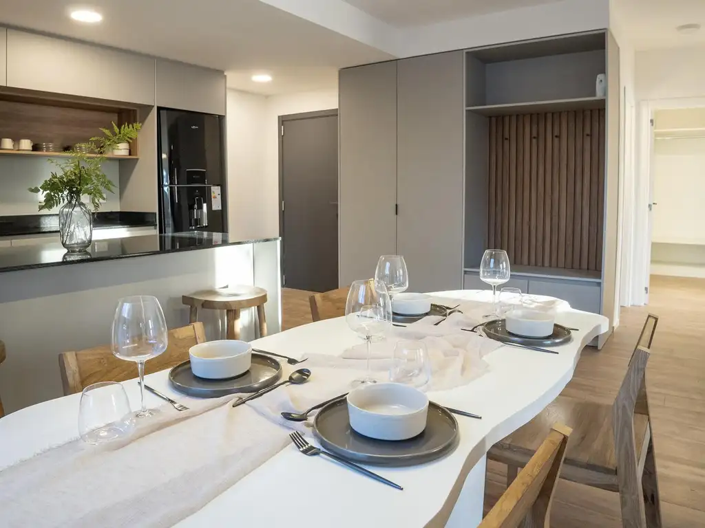 Cocina integrada con isla central, abierta al comedor y living para disfrutar de un ambiente amplio y luminoso