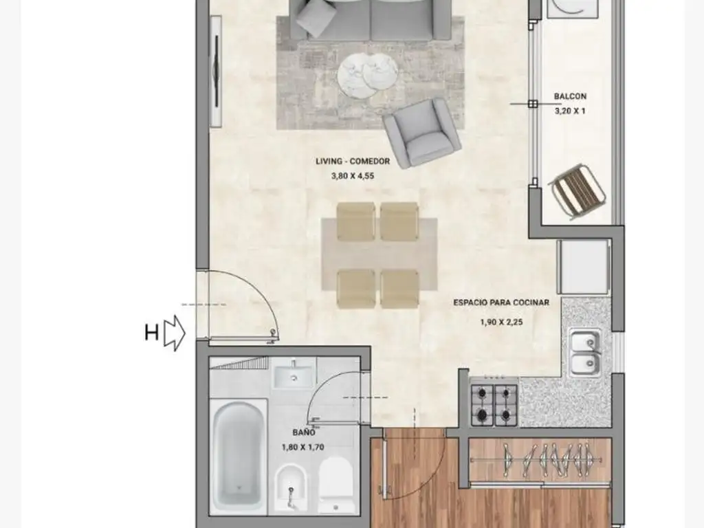 ¡No te pierdas esta oportunidad! Disponemos de departamentos dos ambientes , cocina comedor de concepto abierto equipada con muebles altos y bajos, un ventanal que te llevará a un balcón al frente, baño completo, dormitorio con placard y estufa de tito balanceado