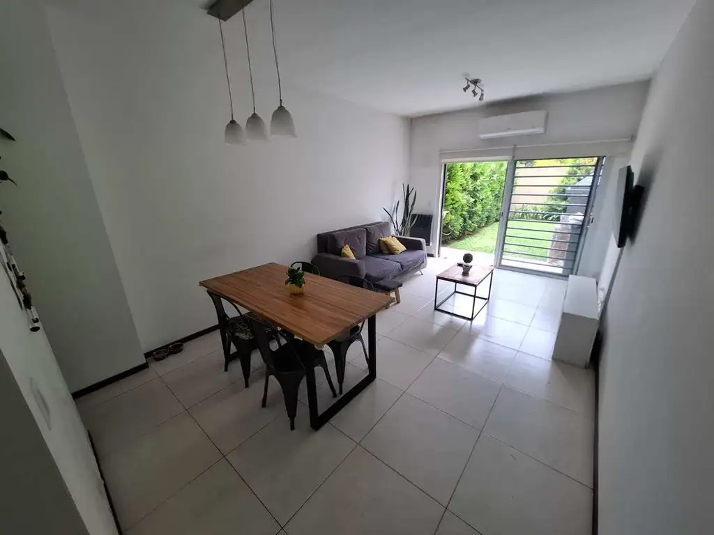Hacia el fondo, el dúplex se abre a un hermoso patio con área verde, perfecto para disfrutar al aire libre, donde se destaca una parrilla propia, excelente para reuniones y uso recreativo.