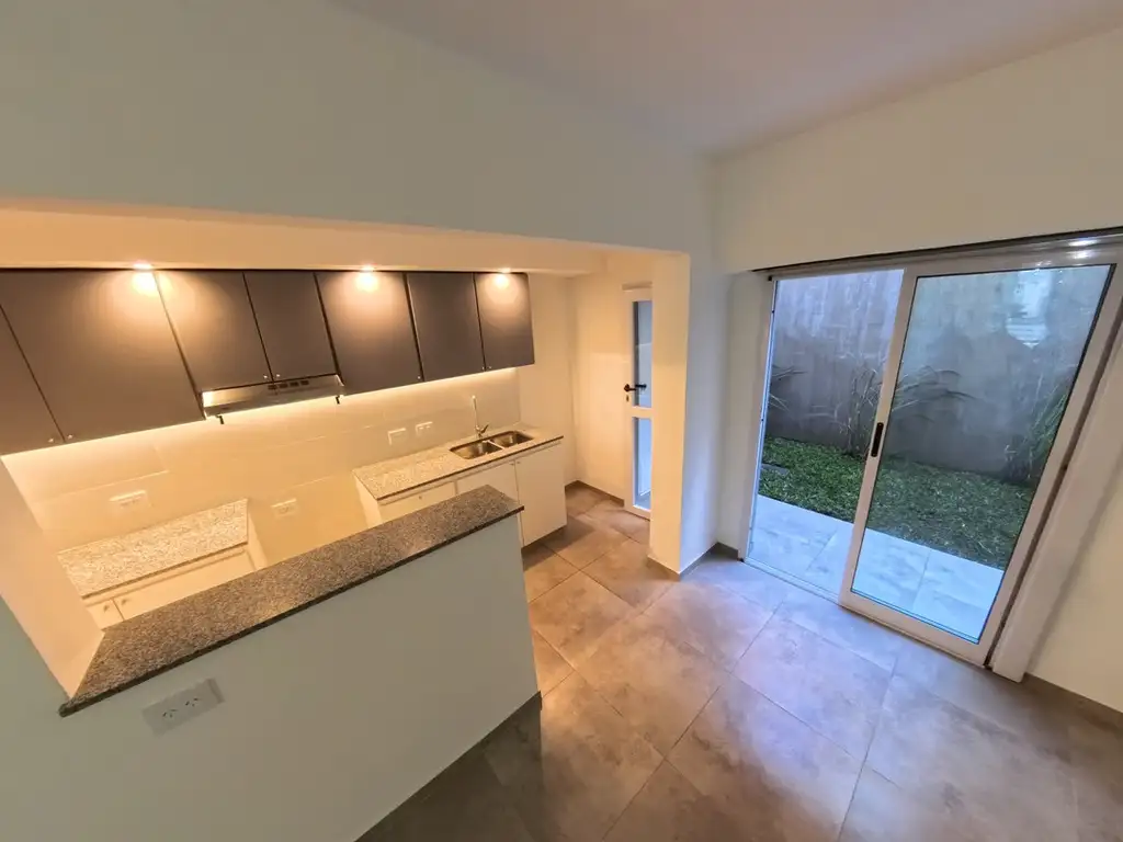 Cuenta con piso de porcelanato, muebles de melamina Faplac con canto de 2mm, correderas telescópicas y un patio propio ideal para disfrutar al aire libre.