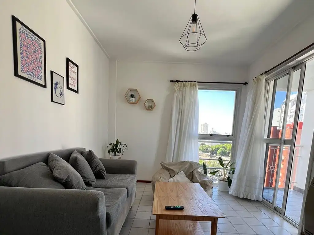 Situado en el piso 10, cuenta con un luminoso living con estufa a gas y salida directa al balcón, ideal para disfrutar del aire y las vistas abiertas.