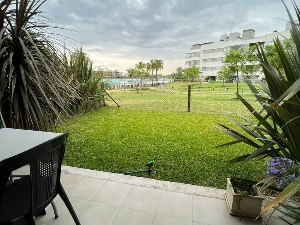 Departamento de dos Ambientes en alquiler temporal/ anual , en planta baja con hermoso Jardín vista a la laguna.