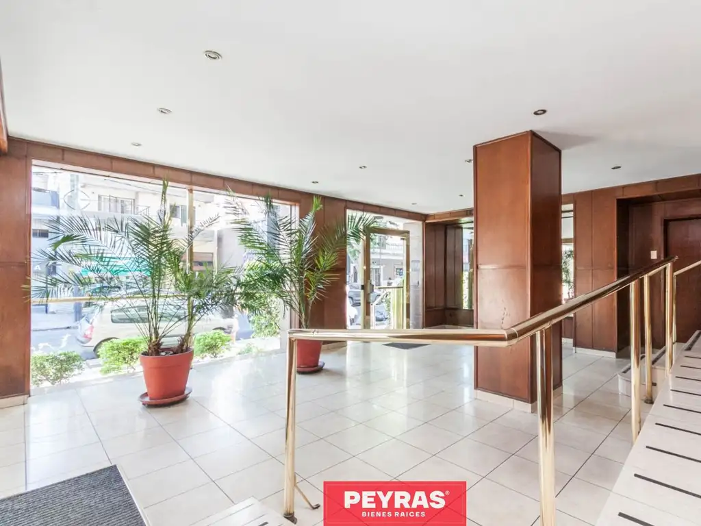 Al ingresar, un vestíbulo con piso de parquet y placard ofrece espacio de guardado inmediato. El living comedor, de amplias dimensiones (8 x 4,5 m), se extiende hacia un balcón aterrazado de 12 metros, ideal para disfrutar de momentos al aire libre y con vistas abiertas.