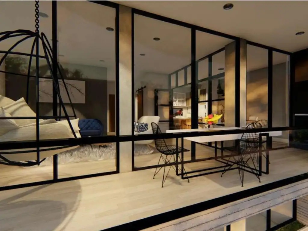 - Living comedor con carpintería metaliza corrediza, la cual permitirá la comunicación entre ambos espacios, revoques en yeso cerámico y pisos de porcelanato.