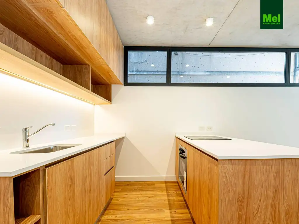 Dispone de un amplio living comedor conectado a la moderna cocina a través de una barra desayunadora, toilette de recepción, balcón aterrazado y un dormitorio en suite con amplio placard. Posee pisos de porcelanato símil madera que le aportan calidad a la unidad.