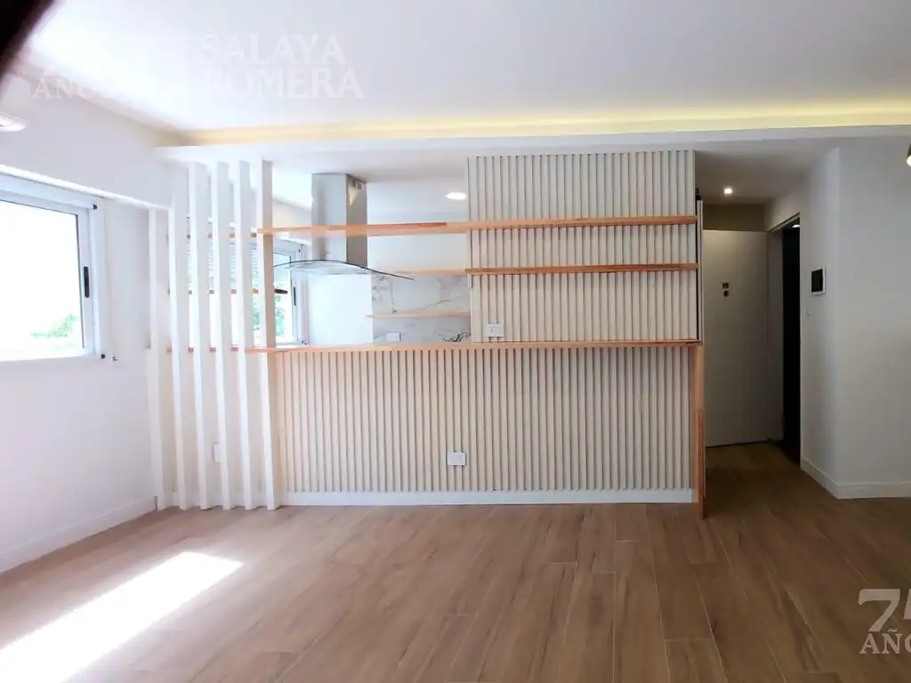 Nuevas carpinterías de aluminio con vidrio DVH, mosquiteros y persianas nuevas de pvc. Pisos de porcelanato simil madera en toda la unidad salvo en baño. El agua caliente es suministrada por un calefón automático a estrenar. Calefacción por aire acondicionado. Se coloca un equipo nuevo en living comedor.