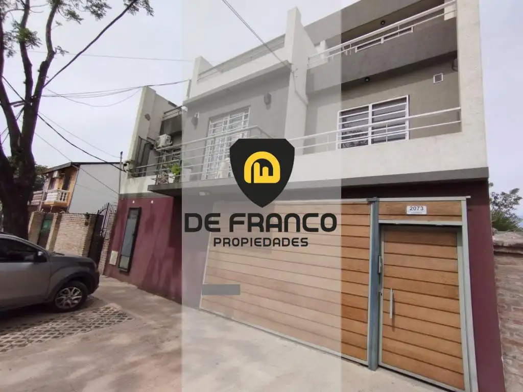 DEPARTAMENTO TIPO DUPLEX 3 AMBIENTES DE APROX 67M2. CUENTA CON LIVING, COCINA INTEGRADA, BAñO COMPLETO CON DUCHA, 2 BALCONES, DOS DORMITORIOS (UNO CON PLACARD). COCHERA CUBIERTA CON PORTóN AUTOMáTICO.