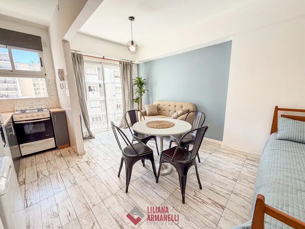 Departamento de 1 ambiente cfte abierto. Reciclado. Balcón saliente. Súper soleado. Cocina con amoblamiento a medida. Baño completo con bañera. Amoblado. 29 mts. Ubicado en Gascón y Tucumán.