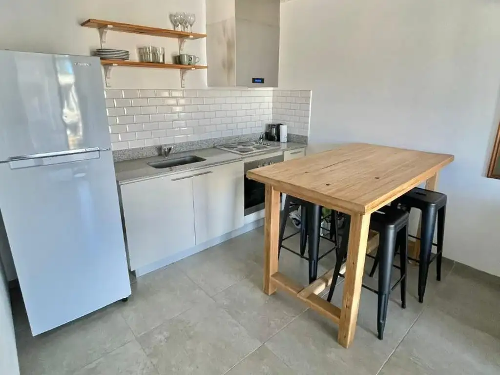 Living comedor con cocina integrada, dormitorio, baño completo, escritorio