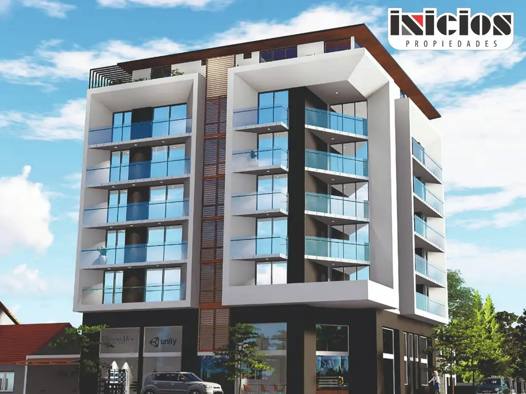 DEPARTAMENTOS: Puertas interiores en madera placa. Instalación eléctrica para aire acondicionado. Instalación para TV. Llave térmica. Disyuntor. Pisos en porcelanato. Barandas de aluminio y vidrio de seguridad. Aberturas en aluminio, con doble vidrio espejado.