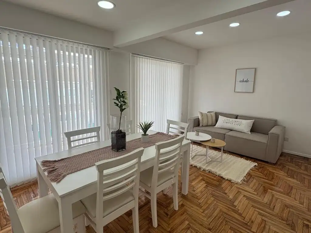 - Living comedor a la calle con balcón terraza 6x4 m piso parquet plastificado, calefactor.