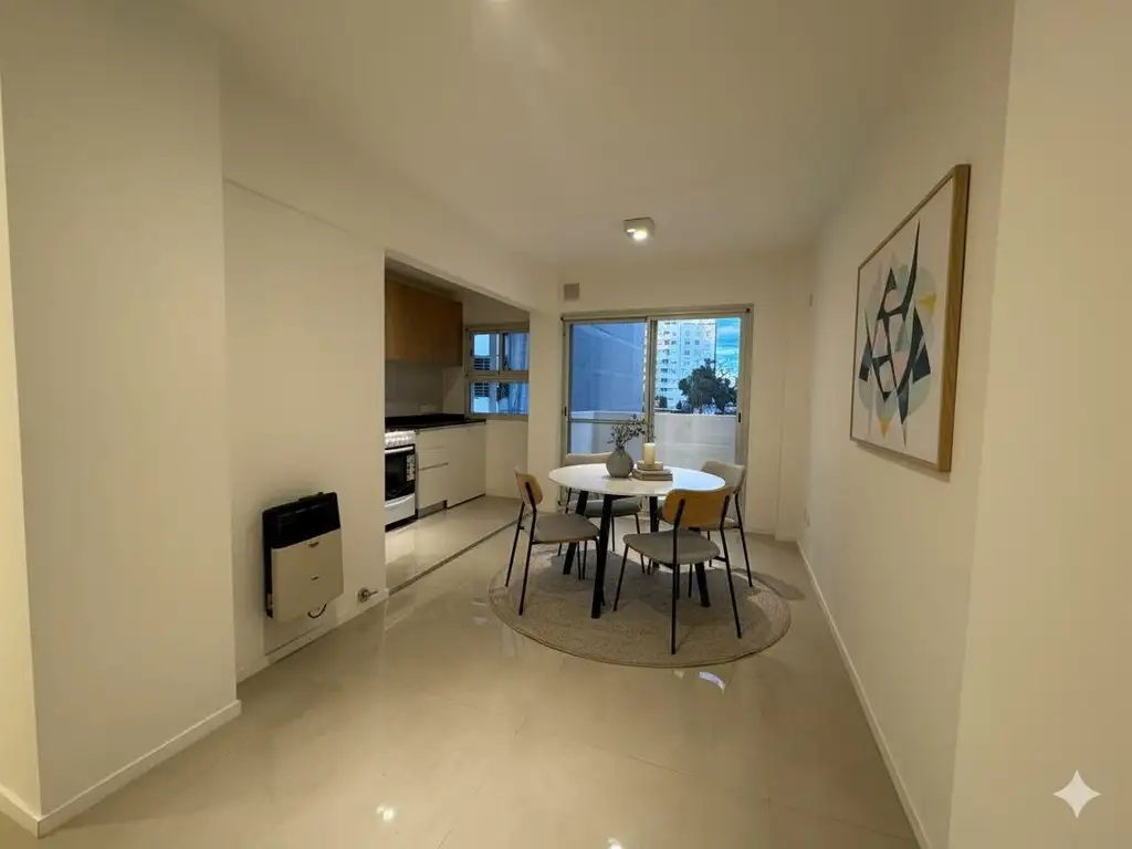 Ingreso pequeño distribuidor, directo al living, living comedor, cocina semi integrada, (se puede separar) Balcón al Este