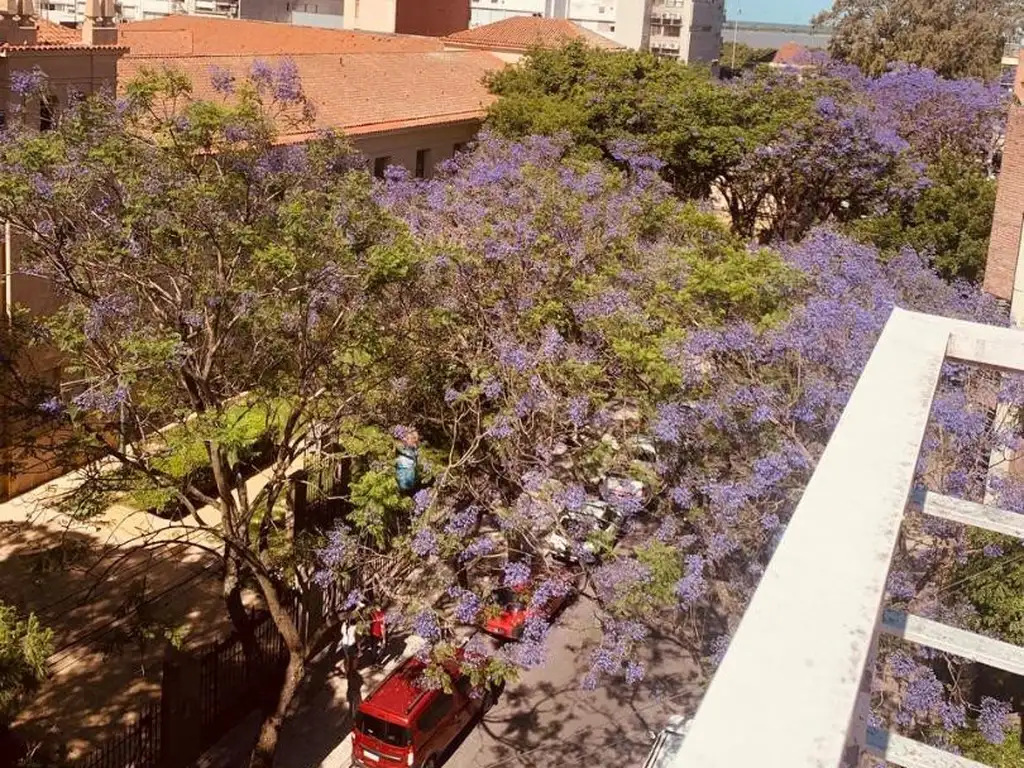 Ubicado en un piso 4° con balcón corrido en toda la esquina sobre dos calles, rodeado de frondosa vegetación y con vista a edificio histórico de valor patrimonial.
