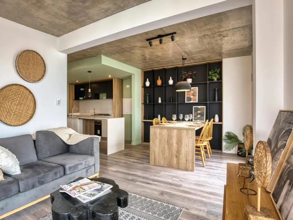 Este espectacular piso exclusivo combina amplitud, diseño y confort. Al ingresar, nos recibe un amplio y luminoso living comedor con cocina integrada, resuelta con una moderna barra desayunadora en Silestone blanco, ideal para disfrutar momentos únicos.