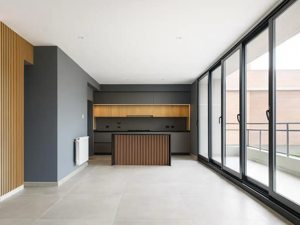 Amplio living-comedor con ventanales de piso a techo y salida a balcón corrido
