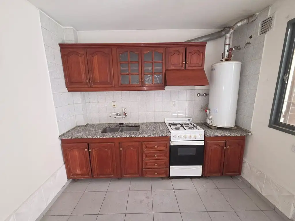 Amplia cocina comedor con termotanque y cocina con salida a un pequeño patio