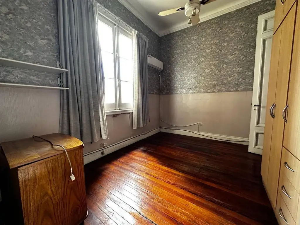 Las 3 habitaciones cuentan con piso de pinotea original, y son de gran tamaño. Dos de ellas con vista al frente del edificio (calle Saenz Peña) y la tercera con vista al contrafrente. La principal cuenta con balcón francés. Hay aire acondicionado frio- calor en la habitación principal y en la que da al contrafrente. En la restante hay ventilador de techo.