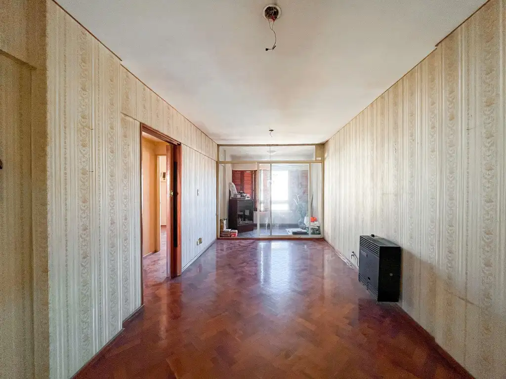 Perfecto departamento de 2 dormitorios con doble orientación, hall de recepción con doble ingreso, el principal a living-comedor con salida a balcón cerrado al frente oeste, cocina separada amplia con balcón contrafrente cerrado con lavadero sectorizado, distribuidor intimo con puerta corrediza a un 1 baño completo con ventilación natural y 2 dormitorios. Ventilación cruzada. Calidad solida de época con pisos de parque de madera en combinación con granito y/o cerámica para espacios húmedos, aberturas de chapa corredizas con persianas de madera, placares completos con interiores, puerta de entrada de seguridad, agua caliente por calefón a gas y climatización por estufa a gas y split de aire acondicionado (no incluye artefactos). Baño con loza sanitaria y griferías en correcto funcionamiento, bañera y espejo colocado (ventilación natural). Cocina con mobiliario completo de bajo mesada, alacena y mesada de granito con bacha de acero inoxidable, cocina a gas y extractor, espacio técnico para heladera y microondas.