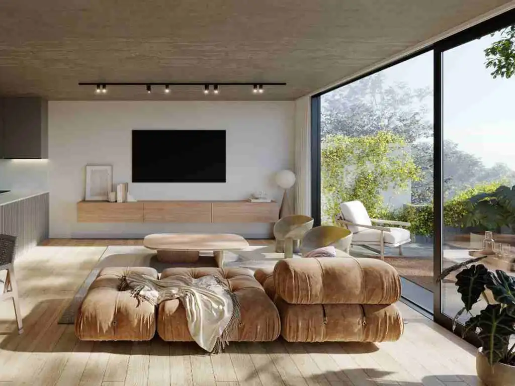 Las unidades fueron concebidas con espíritu de casa, priorizando luz natural, privacidad y ventilación cruzada. Las expansiones —balcones, terrazas y jardines propios— se integran al interior como una verdadera extensión de los ambientes.
