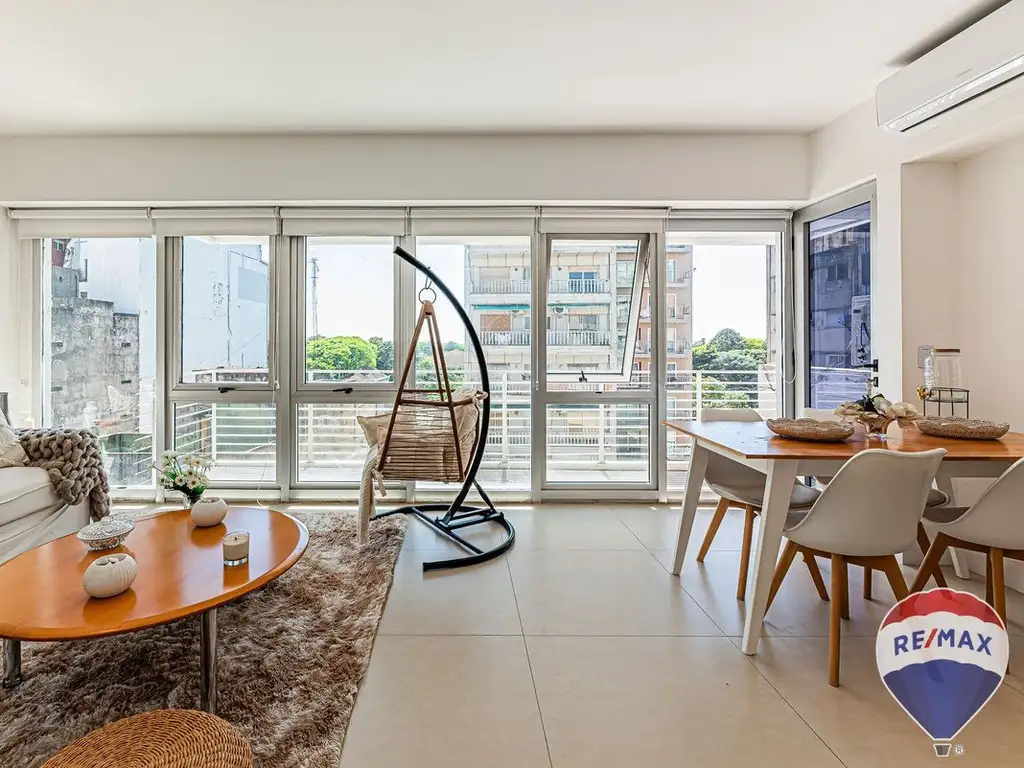Unidad funcional actualmente dividida en dos amplios departamentos de 2 ambientes totalmente independientes, uno al frente y otro al contrafrente, muy luminosos, ambos con servicios separados, lo que ofrece una excelente versatilidad de uso. La propiedad cuenta además con cochera, un diferencial muy valorado en la zona. Se entrega equipada con aires acondicionados frío/calor y cortinas blackout.