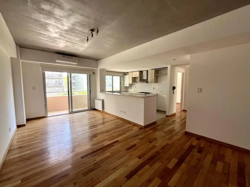 -Amplio living comedor con cocina integrada, barra desayunadora en Silestone. Muebles bajo mesada y alacenas. Conexión para lavarropas o lavavajillas.