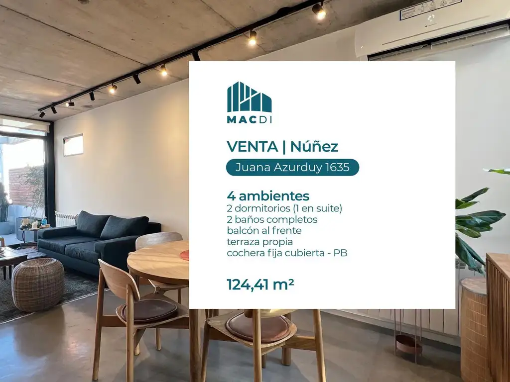 Excelente Dpto. en Venta con terraza propia y cochera fija cubierta en Núñez.